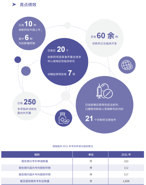 报告指出,在科技创新战略引领下,YY易游m6米乐2021年累计研发投入62.03亿元,比上年增长24.34%,研发投入占销售收入比重达到23.95%,再创历史新高。以此为支撑,2021年公司有3款创新药获批上市,已上市创新药总量增至10款,其中6款为抗肿瘤药物。同时还有60余种创新药正在临床开发,250多项临床试验在国内外开展,其中近20个创新药项目获准开展全球多中心或地区性临床研究。在创新药研发上,YY易游m6米乐已基本形成了上市一批、临床一批、开发一批的良性循环。