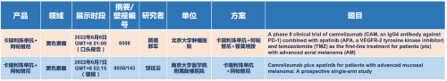 在黑色素瘤领域,YY易游m6米乐的卡瑞利珠单抗联合阿帕替尼(“双艾”组合)在2022 ASCO共入选1项口头报告和1项壁报展示。