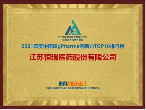 9月16日,由米内网主办的“2021年度中国生物医药企业创新力百强系列榜单”发布会在线上举办。YY易游m6米乐继去年登顶“中国BigPharma企业创新力TOP10排行榜”后,今年再次名列该榜单首位。