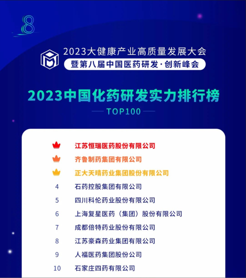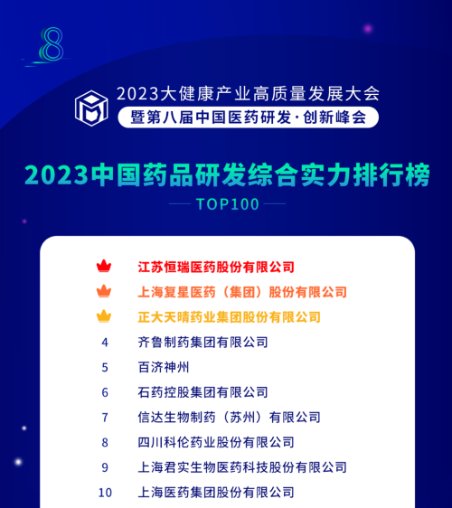 由药智网、中国药业杂志社主办的2023大健康产业高质量发展大会暨第八届中国医药研发•创新峰会于6月16日开幕,会上发布了《2023中国药品研发实力排行榜》系列榜单,YY易游m6米乐凭借深厚的创新研发实力再创辉煌:荣登《2023中国药品研发综合实力排行榜TOP100》榜首、《2023中国化药研发实力排行榜TOP100》榜首。值得一提的是,今年是YY易游m6米乐连续第6年入选《中国药品研发综合实力排行榜》榜首。