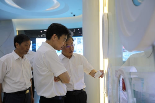 在公司展厅,考察组一行详细了解了YY易游m6米乐五十余年的发展沿革。戴洪斌介绍到,作为在连云港及江苏本土成长起来的创新型国际化制药企业,YY易游m6米乐始终坚持为患者服务的初心,聚焦抗肿瘤、手术用药、自身免疫疾病、代谢性疾病、心血管疾病等领域,研发生产更多适合中国人生命基因传承和身体素质特点的“中国药”。在科技创新和国际化双轮驱动战略的引领下,公司不断加大研发投入,近十年公司累计研发投入292亿元,在连云港、上海、美国、欧洲建立了14个研发中心,打造了一支5000余人的全球研发团队。目前公司已在国内获批上市13款自研创新药、2款合作引进创新药,另外还有80多个自主创新产品正在临床开发,260多项临床试验在国内外开展。