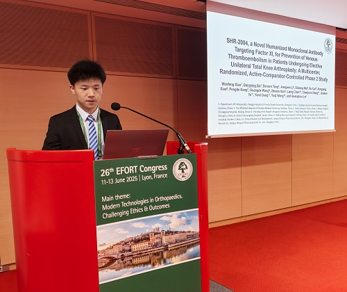 [1]SHR-2004, A Novel Humanized Monoclonal Antibody Targeting Factor XI, For Prevention Of Venous Thromboembolism In Patients Undergoing Elective Unilateral Total Knee Arthroplasty: A Multicenter, Randomized, Active-Comparator-Controlled Phase 2 Study. EFORT 2025: Free Paper (oral presentation) 815