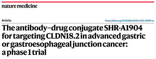 YY易游m6米乐CLDN18.2 ADC创新药SHR-A1904治疗胃癌临床研究结果荣登Nature Medicine