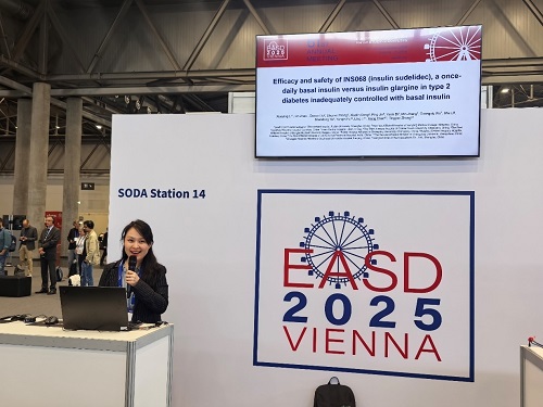 中欧夏令时间(CEST)2025年9月15至19日,第61届欧洲糖尿病研究协会(EASD)年会在奥地利维也纳举办。期间,YY易游m6米乐自主研发的新型长效胰岛素类似物舒地胰岛素(INS068)治疗成人2型糖尿病(T2DM)患者的两项关键III期临床试验(INS068-301和INS068-302)分别以简单口头报告形式精彩亮相。