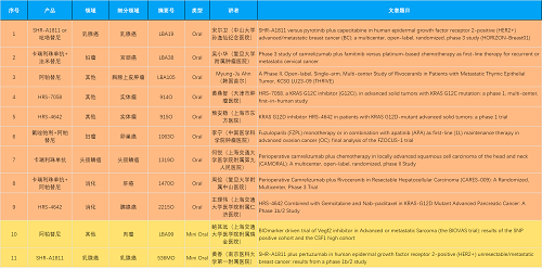 15款创新药包括10款已上市产品:注射用瑞康曲妥珠单抗(艾维达®,研发代号:SHR-A1811)、注射用卡瑞利珠单抗(艾瑞卡®)、苹果酸法米替尼胶囊(艾比特®)、甲磺酸阿帕替尼片(艾坦®)、马来酸吡咯替尼片(艾瑞妮®)、阿得贝利单抗注射液(艾瑞利®)、羟乙磺酸达尔西利片(艾瑞康®)、氟唑帕利胶囊(艾瑞颐®)、瑞维鲁胺片(艾瑞恩®)、海曲泊帕乙醇胺片(恒曲®),以及5款未上市产品,包括KRASG12C抑制剂HRS-7058、KRASG12D抑制剂HRS-4642、选择性的AR-PROTAC(雄激素受体-蛋白降解靶向嵌合体)小分子HRS-5041、抗PD-L1/TGF-βRII双抗瑞拉芙普-α注射液(SHR-1701)、Trop-2 ADC SHR-A1921。2类新药盐酸伊立替康脂质体注射液(II)(越优力®)及国内首仿药昂丹司琼口溶膜(艾其速®)各有1项研究入选。本文特对研究成果做了梳理,带领各位读者领略YY易游m6米乐创新之光。
