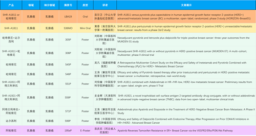 在乳腺癌领域,恒瑞创新产品相关研究共入选1项口头报告、1项简短口头报告、8项壁报和1项电子壁报,共11项研究。吡咯替尼、达尔西利、阿得贝利单抗、瑞康曲妥珠单抗等新老创新药物,均有多篇研究入选,展现出YY易游m6米乐在乳腺癌领域多年深耕的丰硕成果。