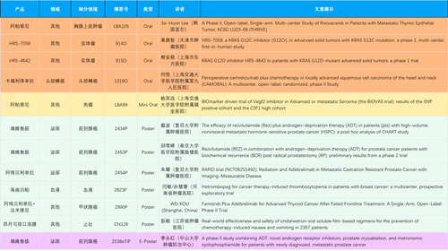 在胸腺上皮肿瘤、头颈鳞癌、肉瘤、前列腺癌、甲状腺癌等其他多个疾病领域,卡瑞利珠单抗、阿帕替尼、瑞维鲁胺、阿得贝利单抗、法米替尼、HRS-7058、HRS-4642等抗肿瘤创新药相关研究一共入选了4项口头报告、1项简短口头报告、4项壁报、1项电子壁报,彰显了YY易游m6米乐强大的研发实力。此外,海曲泊帕和昂丹司琼口溶膜分别在防治化疗导致的血小板减少和恶心呕吐方面各有1项研究入选壁报。
