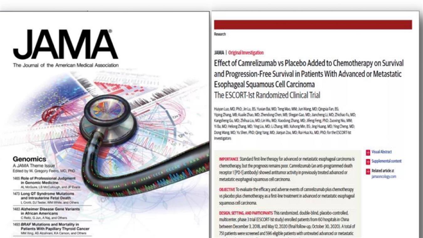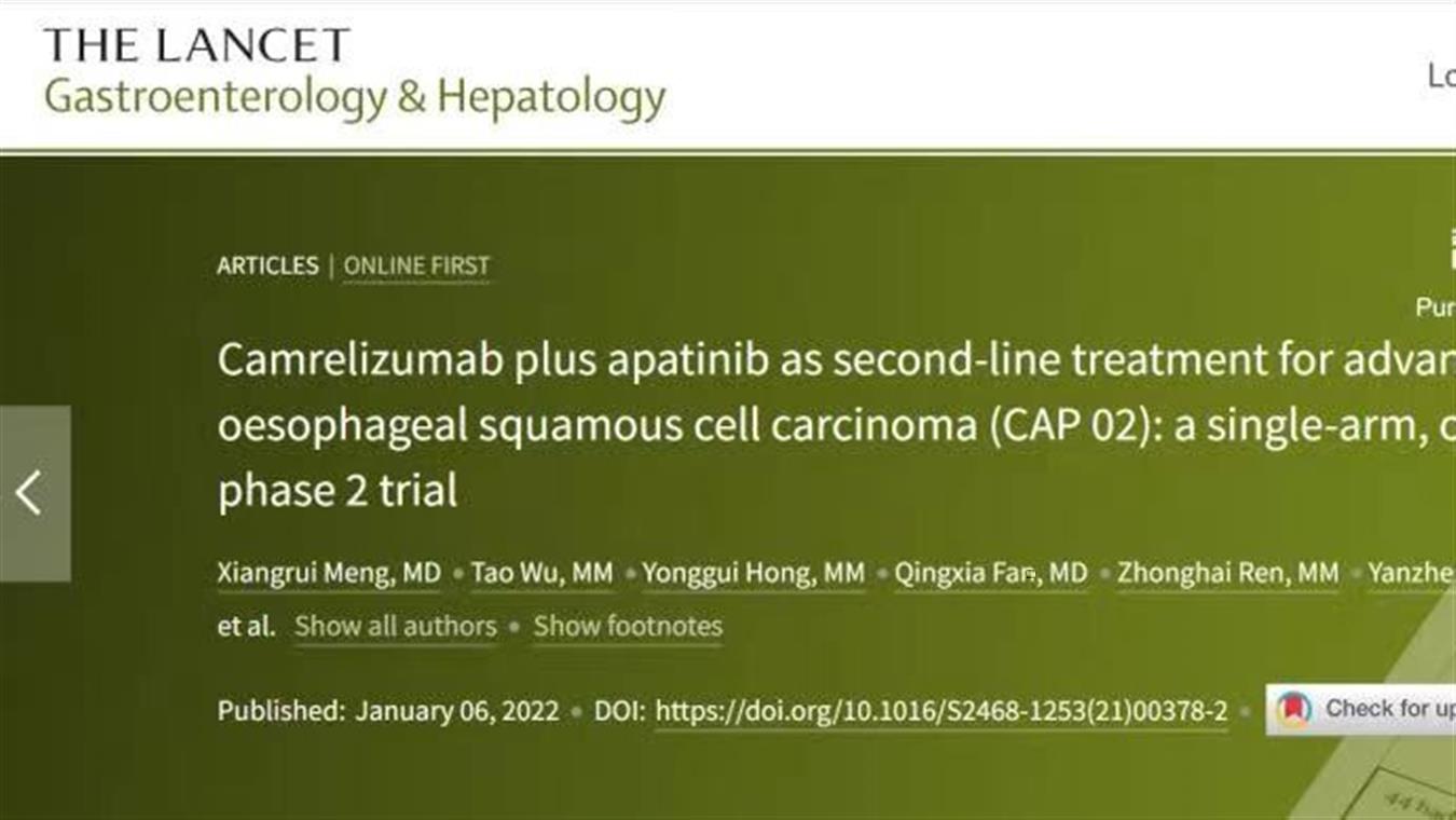 喜讯!YY易游m6米乐卡瑞利珠单抗食管癌研究再登国际顶级医学期刊